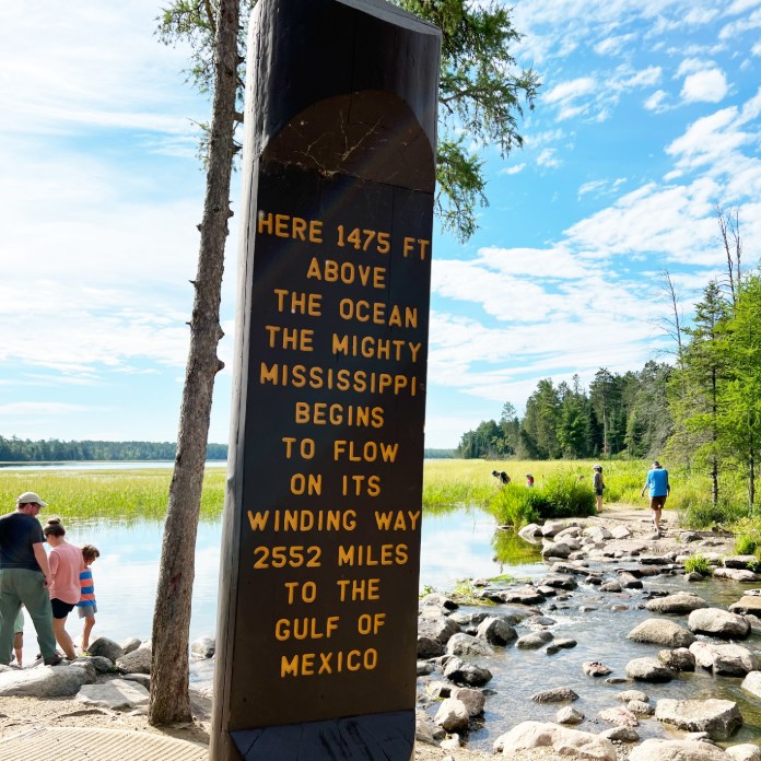 Start the Great River Road with a walk across the rocks at the beginning of the Mississippi River. (Photo by Chuck Cochran)